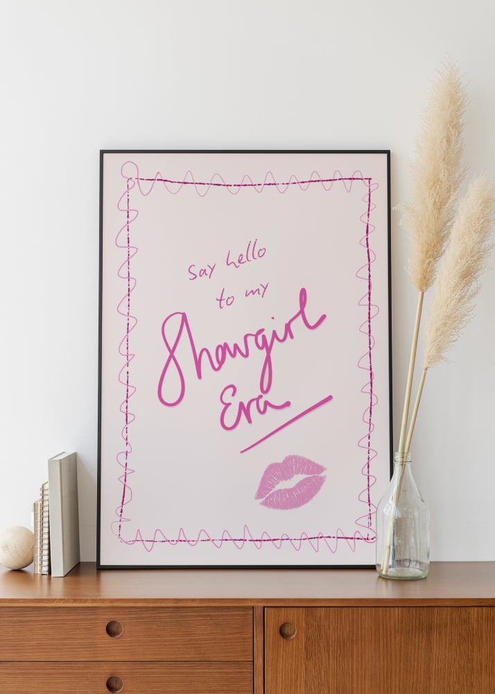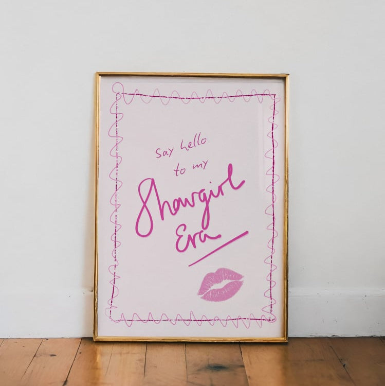 This playful print is your official invitation to Taylor Swift's glamorous new chapter: 'The Life of a Showgirl' era! Featuring the iconic 'Say hello to my Showgirl Era' text, this artwork perfectly channels the upbeat, glittering, and high-energy pop vibes of her 12th studio album.