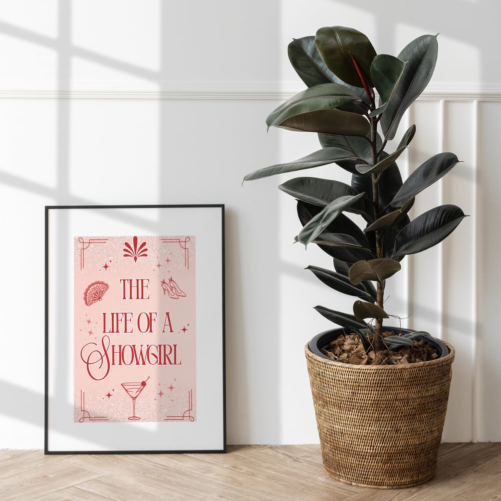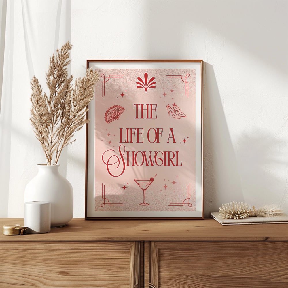 Add a splash of dazzling Taylor Swift glamour to your walls with this gorgeous 'The Life of a Showgirl' art print. Inspired by the theatrical flair, dazzling costumes, and unforgettable energy of her 'The Eras Tour', this piece captures the ultimate glittering fantasy.